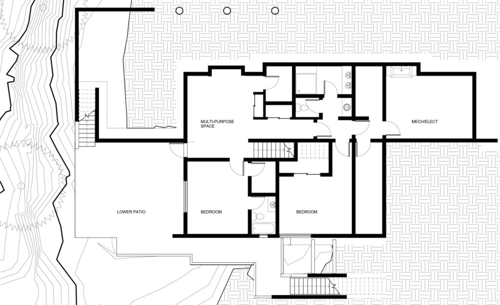 Le rez-de-chaussée dispose également d’un atelier de peinture et de menuiserie. La terrasse abaissée au bord du lac a été conçue de manière à ne pas perturber la vue sur le magnifique paysage.