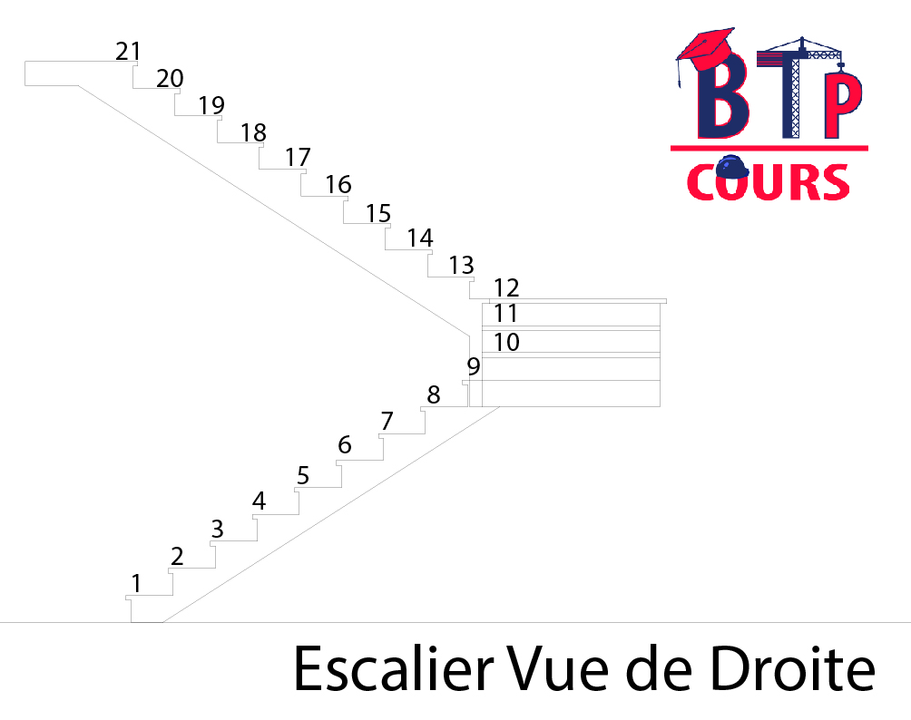 - Le reculement: longueur de l’escalier projetée au sol. Le reculement définit l’encombrement de l’escalier.
