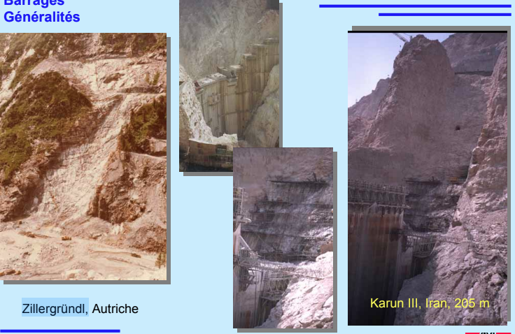 - Les barrages en enrochement à noyau central argileux, de part leur capacité à supporter de grandes déformations.