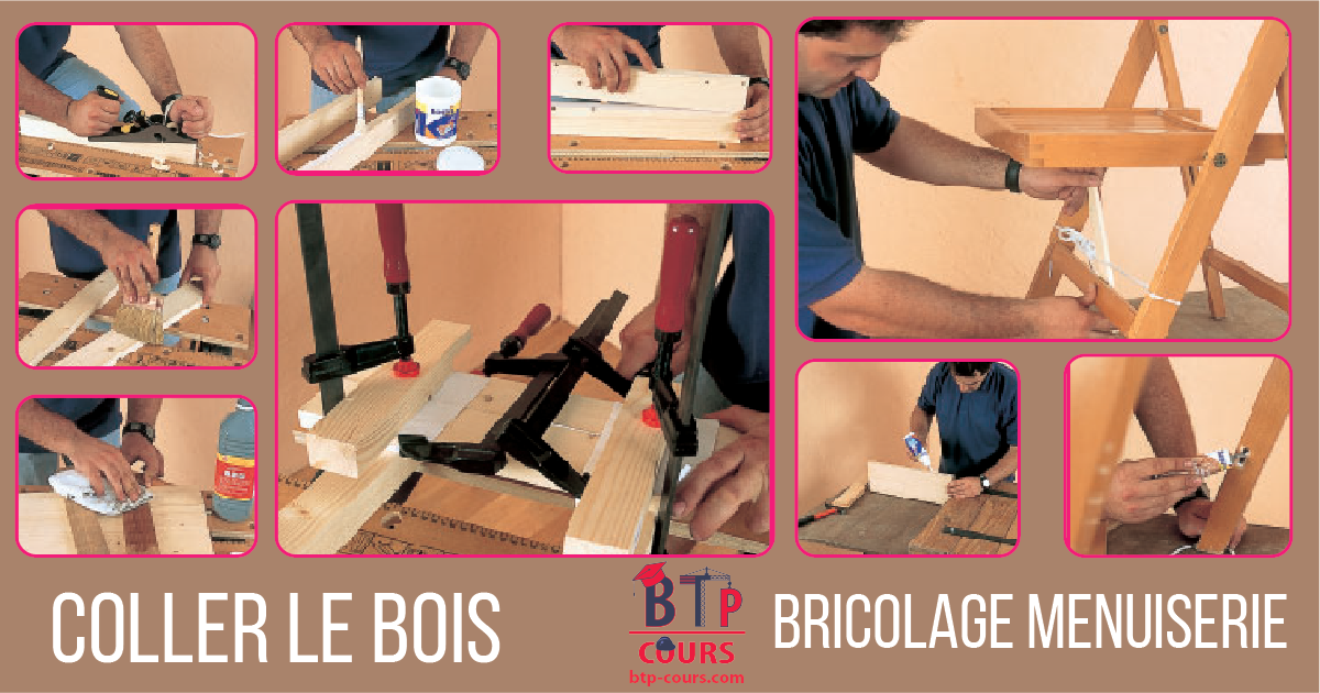 Le collage est une technique d’assemblage du bois utilisée aussi bien en menuiserie qu’en ébénisterie, soit seule, soit en association avec une autre technique d’assemblage : clouage ou tourillonnage (Voir page 204). Il est aussi utilisé pour la réparation d’objets en bois. Selon les cas (menuiserie intérieure, menuiserie extérieure, stratifié…), on utilise des colles différentes.