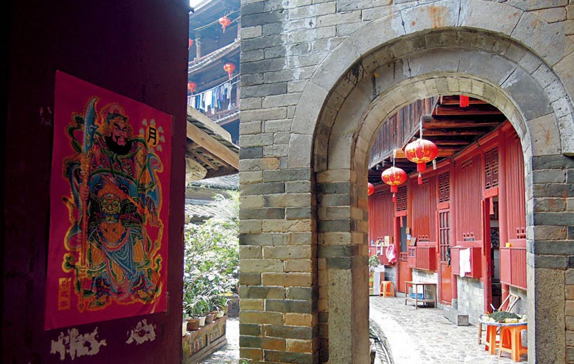 Construite conformément à l’idéologie des Bagua (les huit schémas utilisés dans la divination traditionnelle), cette structure circulaire est chaude en hiver et fraîche en été. Pendant la journée, le ciel au centre du tulou illumine chaque pièce de la maison et la nuit, on peut voir les lueurs des lampes à huile et des bougies. L’ensemble du bâtiment est divisé en huit sections, avec un pare-feu entre chaque section. Dans chaque section, il y a six chambres. Chacune des huit sections est en soi une unité autonome, mais le bâtiment entier peut être connecté lorsque les portes séparant les sections sont ouvertes.