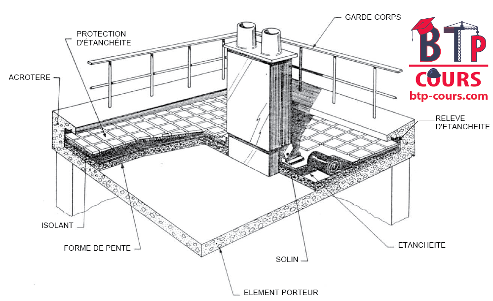 TOITURES-TERRASSES : ouvrages d’allure horizontale destinés à couvrir des bâtiments.