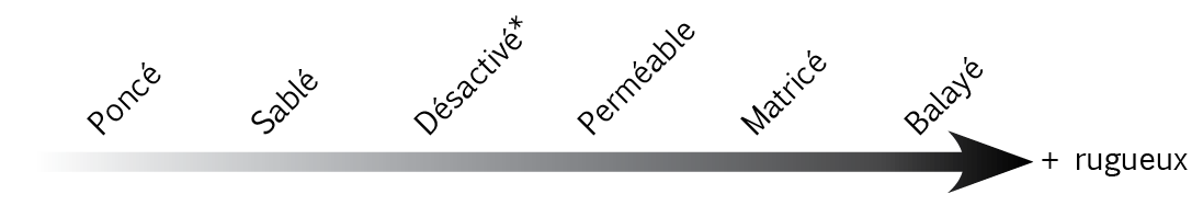 * peut être plus rugueux suivant la taille du granulat et la désactivation