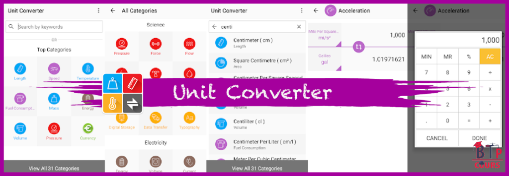 CARACTÉRISTIQUES de Unit Converter – Application de calcul de conversion d’unité