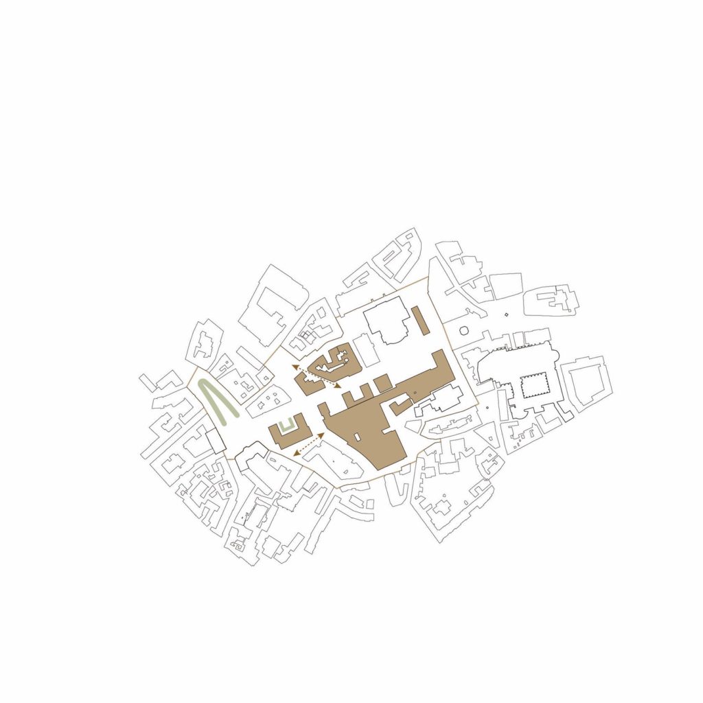 Au 2ème étage, on trouve un auditorium pour les répétitions et un petit centre culturel dédié aux programmes d’apprentissage de la musique et aux arts du spectacle. En ce qui concerne les façades, un système de composition basé sur une répétition morphologique produit des variations et des juxtapositions subtiles qui garantissent à leur tour la cohérence de l’intervention dans son ensemble, donnant à chaque bâtiment ou ensemble de bâtiments leur propre identité.